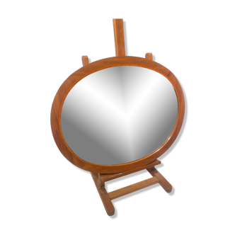Vintage mirror, to be laid, tripod legs (including a swivel) in rattan. Dimensions: high. 35 cm, diam +/- 21 cm.