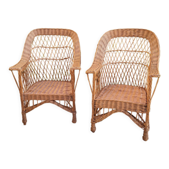 Fautelle in rattans, white very good condition very wide and comfortable, cousin brand new and very beautiful fabric, a lot of charm, in the living room or champagne house.