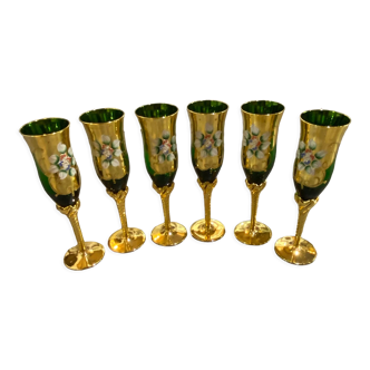Magnificent pair of murano champagne flutes hand painted and gilded with fine gold.