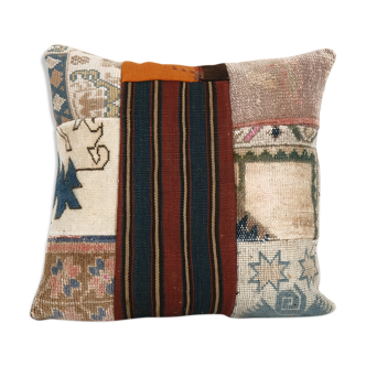 Handwoven patchwork pillow; Fashioned (cutted and stitched), from 30-40 years old vintage kilim rugs. Each of our pillow covers is cut from an old kilim, flat surface with no pile... This luxury cushion comes in a variety of patterns to suit your decor and will add elegance and drama to any room in your home. Perfect for your living room, office, bedroom or garden decoration. * size is 20 inc X 20 inc / 50 cm X 50 cm. * front side of the pillow is made from a handmade kilim. * back side cotton and has closed with a solid hidden zipper. * this listing is only for cushion cover and its insert is not included. The pillow covers are clean and ready to use. Dry clean is recommended. We ship worldwide via fedex and ups express. You can have it in 3-4 days max. Contact: for any other questions, you can write us any time you want. Sku: 28.