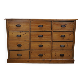 Vintage industrial wooden workbench with drawers