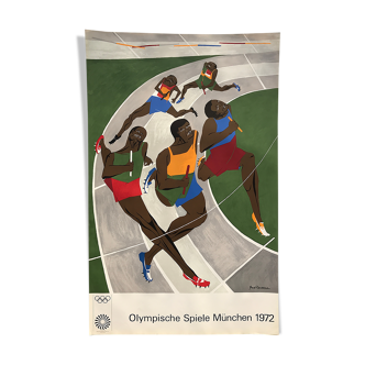 Poster munich 1972. Munich 1972 olympic games. Printed by mandruck in july 1971 - munich germany. Original poster on the theme of basketball poster from a photo by max mülberger. Dimensions: 59.5 X 84cm. Players' drawings, neon colors. References: foto max mühlberger 07.71.41 printed in germany by mandruck, münchen. Displays in very good condition. Kept in its original case from germany (see photo). Original vintage sports poster for the 1972 olympic games in munich.