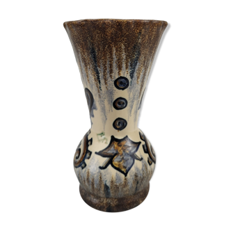 Hand-painted ceramic vase by fouillen quimper, height 25 cm and 12 cm in diameter impeccable condition.