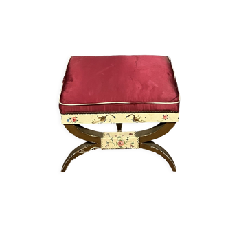 Pair of empire style stools in mahogany with X base, beautiful manufacture of the mid-twentieth century, good general condition, wear of use, clean fabrics.