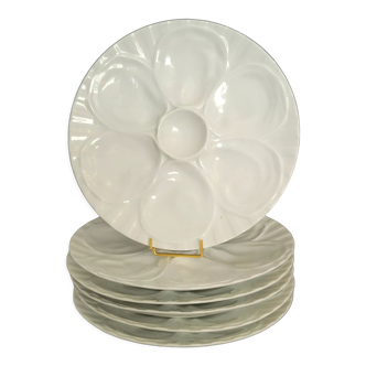 Set of 6 pillivuyt white porcelain oyster plates. Very good state. For 6 oysters. Diameter: 23 cm total weight: 3.5 kg shipping possible by mondial relay for only 6.50 e, or by colissimo 14 e (2023 price). For certain european countries count 9.70 e in mondial relay, home delivery. (-belgium-spain-italy -netherlands- luxembourg-portugal - austria) for great britain shipping by colissimo only, ask for the combined shipping rate in the event of multiple purchases.