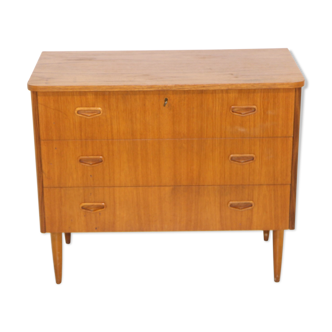 Mid-Century Retro Vintage Teak Bureau / Desk by Meredew 1960. Large Writing Surface • Danish Design Influence • Elegant Storage. A beautifully designed mid-century teak bureau by Meredew, dating from the 1960s, combining practicality with the clean, elegant lines of Scandinavian-inspired design. This stylish piece features a generous fold-down writing surface, creating a large and comfortable workspace—perfect for working from home, writing, or organising daily tasks. Inside and below, the bureau offers excellent storage with two large drawers and two smaller drawers, keeping everything neatly arranged. Crafted from richly grained teak, the bureau showcases warm tones and natural beauty, while its minimalist design reflects the strong Danish modern influence of the era. The balanced proportions and refined detailing make it a versatile addition to both modern and vintage interiors. Ideal for use in a living room, bedroom, or home office, this bureau is both a practical workspace and a timeless design piece. A stylish and practical mid-century bureau—offering a generous workspace, excellent storage, and beautiful teak grain, making it a perfect addition to any design-conscious home. Meredew Furniture was a well-known British manufacturer during the mid-20th century, producing high-quality modern furniture from the 1950s through the 1970s. The company embraced Scandinavian design trends, creating pieces that combined functionality with elegant, minimalist styling. Today, Meredew furniture is appreciated for its durability, craftsmanship, and timeless appeal. Carefully maintained with minor signs of age, enhancing its vintage appeal. Also the item was in our workshop and was looked all over and has a small repair to the side as can be seen on the photo, which reflects on the price. L 110 cm X D 45 cm X H 110, 5 cm. You're very welcome to come browse our store. We have much more to see, such as dining tables, coffee tables, sideboards, chairs, chests of drawers, .