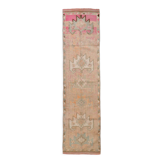A stunning and lengthy wool runner from 1960s greece, with an overall shade of pinky red. Can be used as a long runner in a corridor, as a throw over the back of a sofa, or even as a piece of wall art. The rose patterns are in red, purple, and cream, and are in an almost pixelated style – this is due to the nature of the looming machine. As a result, the rug is pleasingly imperfect. The rug itself is slightly discoloured, but this is to be expected given a piece of this vintage. Please note in the pictures it may look slightly creased – this is because the item has recently been hand washed. Be aware, however, that you can also machine wash this runner. This rug is not just a fantastic piece of folk art. The tradition in this part of greece is that young girls, in preparation for their marriage dowry, must produce a huge amount of textile products with the help of their mothers and grandmothers. When the time comes to get married they display their wares to their village, taking them on a parade to their groom's house whilst accompanied by music and dance. The dowry law in greece ended in 1982, but the tradition continues in some rural parts of the country to this day. Creator: unknown. Place of origin: greece. Date of manufacture: 1960s. Period: 1960 - 1969. Materials & techniques: poly/wool mix fabric, dye. Condition: good vintage condition. Wear: some minor wear, to be expected given a fabric of this age. Lenght: 305cm|120in. Width: 73cm|28.7in.