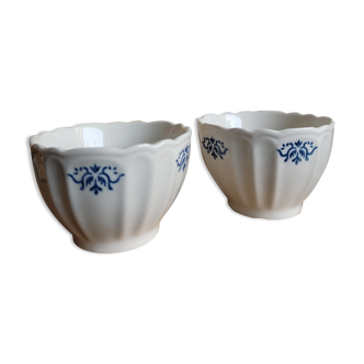 Old coffee cups, stamped for one gien porcelaine badonvillers. One of them has a small crack of 3 cm... A floral decoration, ... Flowers of burgundy color, foliage of gray color... For this duo of cups that will allow you to complete a small vintage coffee service!.