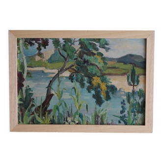 Reproduction of the famous painting “exotic landscape”, by the painter henri rousseau known as le douanier rousseau. Offset print on canvas. Large quality print. Size 100x118 with gilded wood frame.