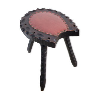 Vintage milk stool with leather top. Made around 1900.