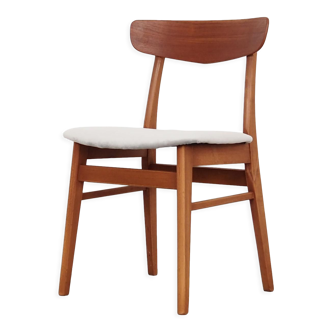 Vintage Hałas chair upholstered in a raspberry strawberry vintage colour. A completely restored original chair designed by Rajmund Hałas in the 1970s with an upholstered backrest - a unique piece. New upholstery covered with a textured raspberry-strawberry upholstery fabric in a natural fabric from the Danubio series. Wooden frame in a dark, natural walnut finish. Dimensions: height: 78 cm|width: 48 cm|depth: 47 cm|seat height: 49 cm|seat depth: 38 cm|seat width: 44 cm.