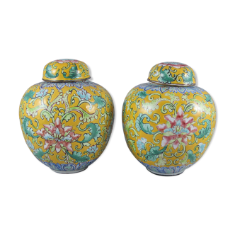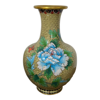 Chinese cloisonné vase decorated with peonies on a blue background. Height: 15 cm.