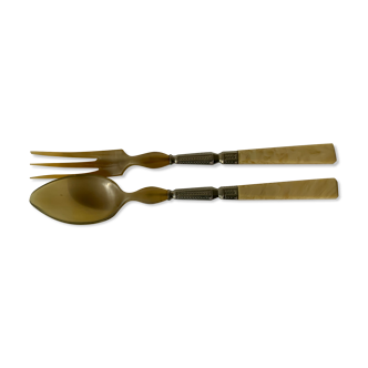 Cutlery with horn and metal-silver salad