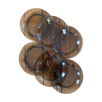 Set of 12 turquoise glass dessert plates. Arcoroc uk. Embossed leaf shape. In perfect condition. Diameter 19 cm. A nice touch of color for a beautiful table.