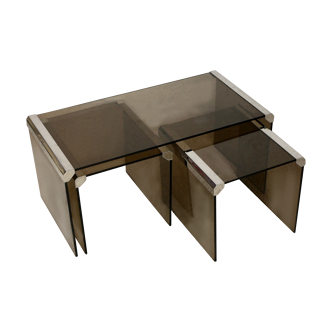 Discover similar itemsVintage coffee table with three swivel trays.