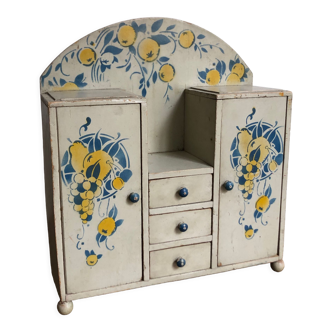 Adorable vintage doll cabinet in jade green that can serve as a small bathroom cabinet. It is in generally good condition, in its original state, vintage condition. The photos speak for themselves. Total height: 63cm Width: 47cm Depth: 15cm Early 20th century. 1920/1930. Full of charm. I carefully select objects with poetic memories. I fell in love with each of them, and I know that one of you will also be captivated: that’s the whole story of the flea market! I detail the condition of the items in the descriptions: I thank you for reading them and for closely examining the related photos. My packaging is secure and of high quality to ensure everything goes smoothly and without breakage.