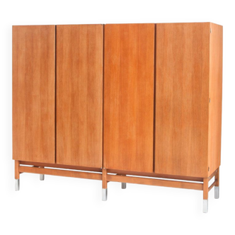 Oak curtain cabinet produced and designed in sweden in the 1950s. The doors slide well, note very slight marks on top. In excellent vintage condition. 17547.