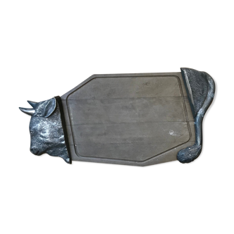 Nice cheese platter and vallauris knife: straw decoration and animal heads, can be inspired by pablo picasso's animal sculptures! Very nice vintage condition, some traces of use on the stainless steel blade. Dimensions: 2 cm X 29 cm X 23 cm.