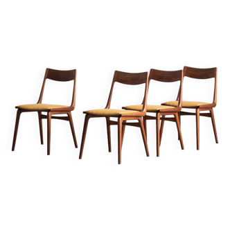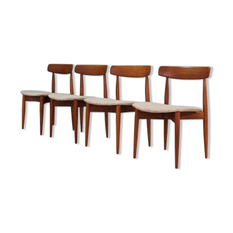 Set of 4 self-service chairs made in France. They have a touch of Scandinavian design, very modern and contemporary. Very good condition. Signs of wear on the wooden frame, a few scratches. Clean, stain-free fabric.