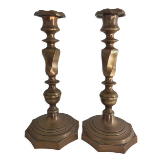 They make a beautiful pair. Slightly different size, these mercurized candle holders will bring alone or associated with others, a beautiful light, a warm decoration. H. 17 cm / 19 cm diam. 8 cm (base) For candles of 2 cm.