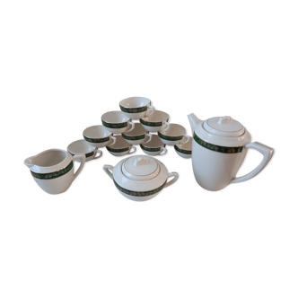 Complete coffee service set eschenbach bavaria-germany in fine porcelain decoration wheat vintage 70s/80s. Porcelain of very beautiful workmanship, very fine (we see in transparency in the cups x6) in very good condition, no cracks, nor breaks, the gilding is present (a micro lack of gilding on the perimeter of the coffee maker -see last photo) Compose of: A large coffee maker height: 24.5 cm at the highest. One sugar bowl: 6.5 cm high by 12 cm in diameter. A milk jar: 8.5 cm high at the highest. 6 coffee cups 6.3 cm high by 7.4 cm in diameter.