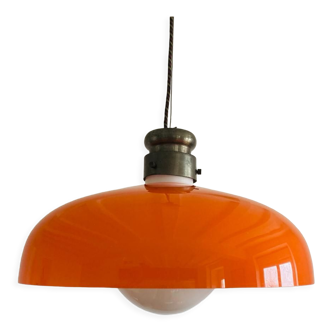 Flower Pot pendant lamp by Verner Panton for Louis Poulsen. Orange. Dimensions: Height: 16 cm (6.3 in) Diameter: 21.5 cm (8.47 in). 1970s. It is new, in its original box. New old stock. The cardboard box has been damaged by tape.