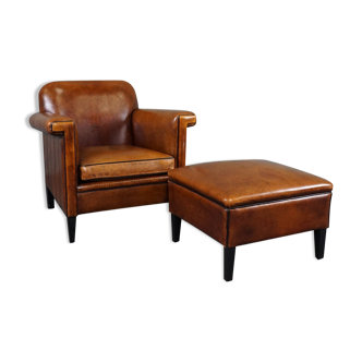 Vintage Dutch cognac coloured leather club chair, with footstool