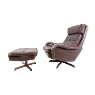 Mid-century vintage high back leather Swivel Armchair with Ottoman, 1970s