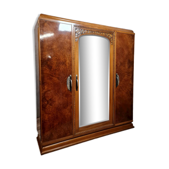 Cabinet 3 doors in pine color light wood divided into: 1 third shelves (5 storage levels) 2 thirds in wardrobe (the wardrobe is topped with an additional storage shelf) Exterior mirror on the middle door and interior mirror on the right door. Great possibility of storage on shelves and hangers. Negotiable price. Villemandeur 45700. This cabinet is fully removable, facilitating transport.
