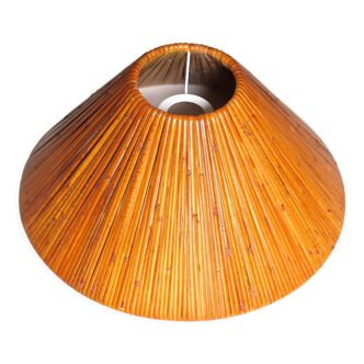 Suspension in raffia braided on a metal frame, vague shape, entirely handmade in morocco. Natural fiber luminaire with bohemian accents. Sold without an electrical system, the place for an e27 socket is provided. The hole is 5 cm in diameter. Size: 78 centimeters X 79 centimeters. Height: 19 centimeters.