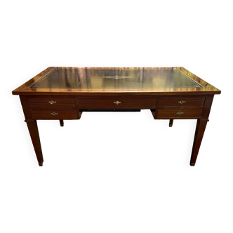 Flat desk from Maison Jansen, In nickel-plated steel, glass, and lacquered wood. With two mahogany and brown lacquer drawer units. France, circa 1970.