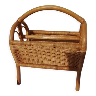 Magazine holder books in rattan and bamboo. Vintage 70s, pretty orange color. Very good condition.