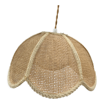Beautiful suspension in rattan color green speaks finished by a pretty cotton stripe. Its color is rare and will suit perfectly in an interior that favors natural materials and colors, a little bohemian but ultra trendy. Once installed it will diffuse a soft and warm light through the fibers of rattan. The proposed electrification is new kit including a thread and matte white socket but it is possible to modify. Dimensions: height 23 cm lampshade alone (69 maximum extendable) - diameter 33 cm. Neat and fast shipping.