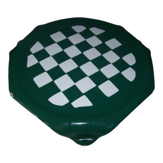Rubbermaid plastic turntable from the 70s. Psychedelic optical effect when the checkerboard pattern rotates. Optical art. Some small scratches, good condition.