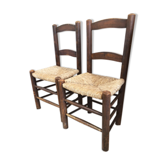 Set of French primitive rush chairs | 1930s