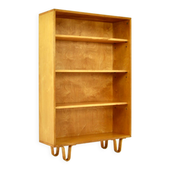Tall profile-system cabinet by Flötotto from the 1970s with three shelves. The frame is made of solid beech wood. Original HPL coating in yellow. Made in Germany, manufacturer: Flötotto.