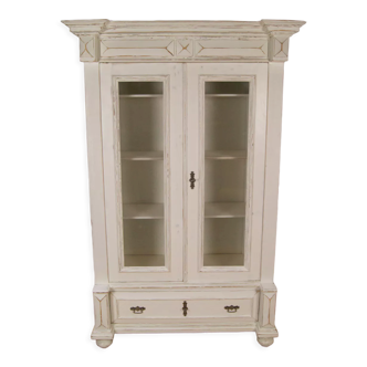 This white display cabinet is appealing with its slender silhouette and great visual lightness. Fully glazed at the front, it allows light to circulate and showcases whatever it holds, whether it be antique crockery, books, small decorative objects, or everyday treasures. Its slim depth makes it an ideal piece for narrow spaces or walls to dress without weighing them down. Designed to be wall-mounted, it frees up floor space and easily integrates into a kitchen, hallway, living room, or even a bathroom with a minimalist style. Offered today as second-hand. It shows some signs of wear related to its use. Contemporary piece, not vintage.