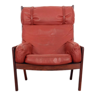 1970s, Scandinavian armchair, furniture leather, dark beech wood.