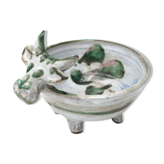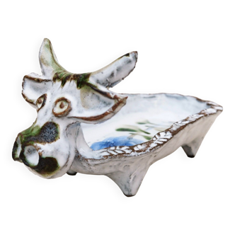 Plate for the ceramic aperitif signed vallauris in the shape of a pig. Shape adapted to present sausage. No defects. Length: 28cm.