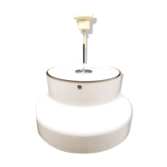 Beautiful vintage ashtray of the 70s in original format with its small foot. Heavy metal white and aluminum. Rotary valve cover. It sinks very well but you have to turn the knob a little to reassemble it. Maximum height 16 cm. Base diameter 8.3 cm. Maximum diameter of the ashtray part 10 cm. Weight 373 grams.