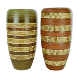 This is a distinctive Mid-Century ceramic vase by Spara, crafted in West Germany during the 1950s. The vase features a sgraffito hand-decorated surface in earthy tones, inspired by African tribal pottery, a hallmark of the Mid-Century design aesthetic. It retains its original label and is marked with form code 250/36, confirming its authenticity and collectible value. Dimensions: Height 36 cm (14.17 in), Diameter 20 cm (7.87 in). The vase is in pristine vintage condition with no flaws, making it an impressive statement piece for any space, whether as a centerpiece, on a sideboard, or as part of a curated Mid-Century ceramics collection.