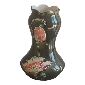 *available* Art Nouveau ceramic poppy flower bowl by Gustave de Bruyn, Fives, Lille. Very good condition. Dimensions: H 14.5 cm, W 29 cm, D 13.5 cm. We remain at your disposal for any further information.