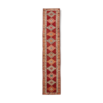 Product size and features. Ft size: 11'2"x2'8" Cm size: 341x81. Stock code: 7120. ”customs fee is on the buyer” “cargo and customs fee of the product to be returned is upon the buyer.” Metarial: 50% wool, 50% cotton, shipping in one day and delivered in five-seven business days rug. If you are looking for a unique, luxurious, timeless statement piece for your home, then look no further because vintage rugs are just what you need. Every rug tells a story and so do the hands that make it using weaving techniques rooted in age-old traditions bringing to light centuries of cultural designs. These rugs are created by hand demonstrating the craftsmanship and diligence in each detail. Vintage rugs were made all over turkey with sizes and designs of bold striking patterns and beautiful color combinations that differ depending on the region and the household they were made for. In the summer, turkish people would collect wool and needed materials, then they would weave them in the winter during which they had free time. It was usually a job done by the older generation. They would weave these rugs for their own homes, as wedding gifts to their daughters and sons or as gifts to their close friends. It was considered to be a precious gift because not only were they hand-made, but they also took a lot of time to make. Our job: we collect and clean the rugs through a special washing process, we repair any damaged pieces and we then sun-fade them in order to give them a perfect vintage look and to allow the rug to easily blend with the furniture in your home. This vintage rug is made in late 20th century, hand-woven using a combination of 50% wool and 50% cotton, getting its strong yet soft nature from cotton and its durable and insulating nature from wool. The marriage of cotton and wool combines their benefits and creates a well-rounded rug. You wont be compromising on quality when purchasing our vintage rugs. Customs fees belong to our customers.