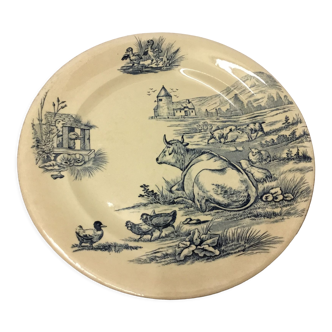 Butter old era 1950 1960 in molded glass oval shape. On the lid is engraved in relief the drawing of a cow in a meadow, flowers and herbs and a mountain in the background of decoration. Stamped number 12 above. Unique piece made of france. Circa 1950/60. In perfect condition without any defects, cracks or lacks. Ideal for storing butter in the refrigerator odorless and/or serving on your table. Very nice manufacture.