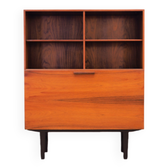 Magnificent solid wood secretary desk / bookcase from the 1950s. Inspired by the post-war modernist style, this piece of furniture is distinguished by its clean and balanced lines. It consists of an open shelf in its upper part, ideal for displaying books or decorative objects. In the center, a drop-leaf door creates a functional secretary area, perfect for working or storing correspondence. Below, two hinged doors conceal a spacious storage compartment. Finally, a discreet and practical drawer is located at the very bottom, integrated into the plinth, providing an additional touch of practicality while respecting the aesthetics of the piece of furniture. A piece of furniture with character, rare and functional, which will bring a touch of discreet elegance to your interior while offering you smart and stylish storage. Dimensions: Length: 96 cm Height: 187 cm Depth: 42 cm Delivery possible in Toulouse and mainland France.