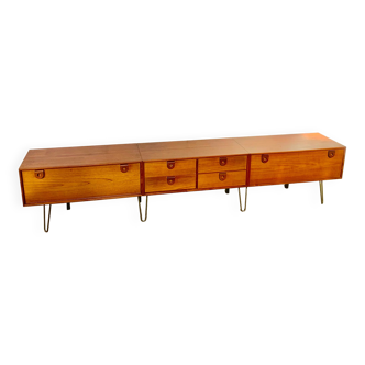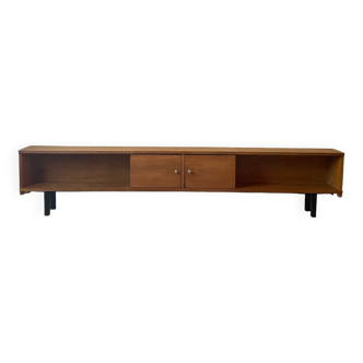 Industrial style tv stand, made of pallet wood, metal drawer and foot. Waxed finish.