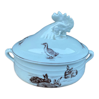 Blue ironstone plate from Gien, "Birds" service, circa 1870, no. 5.