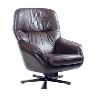 Midcentury Swivel Rocking Leather Armchair, Peem, Finland, 1970s