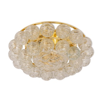 Large ceiling light in brass and blown bubble glass, Glasshütte Limburg, 1970.