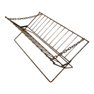 Vintage record player stand. From the 1960s, made of gold-tone metal. Scoubidou cords at the ends. Good used condition. Some slight oxidation on the surface. Needs cleaning. Length 30cm, width 15cm, height 11cm. Ref 1455.